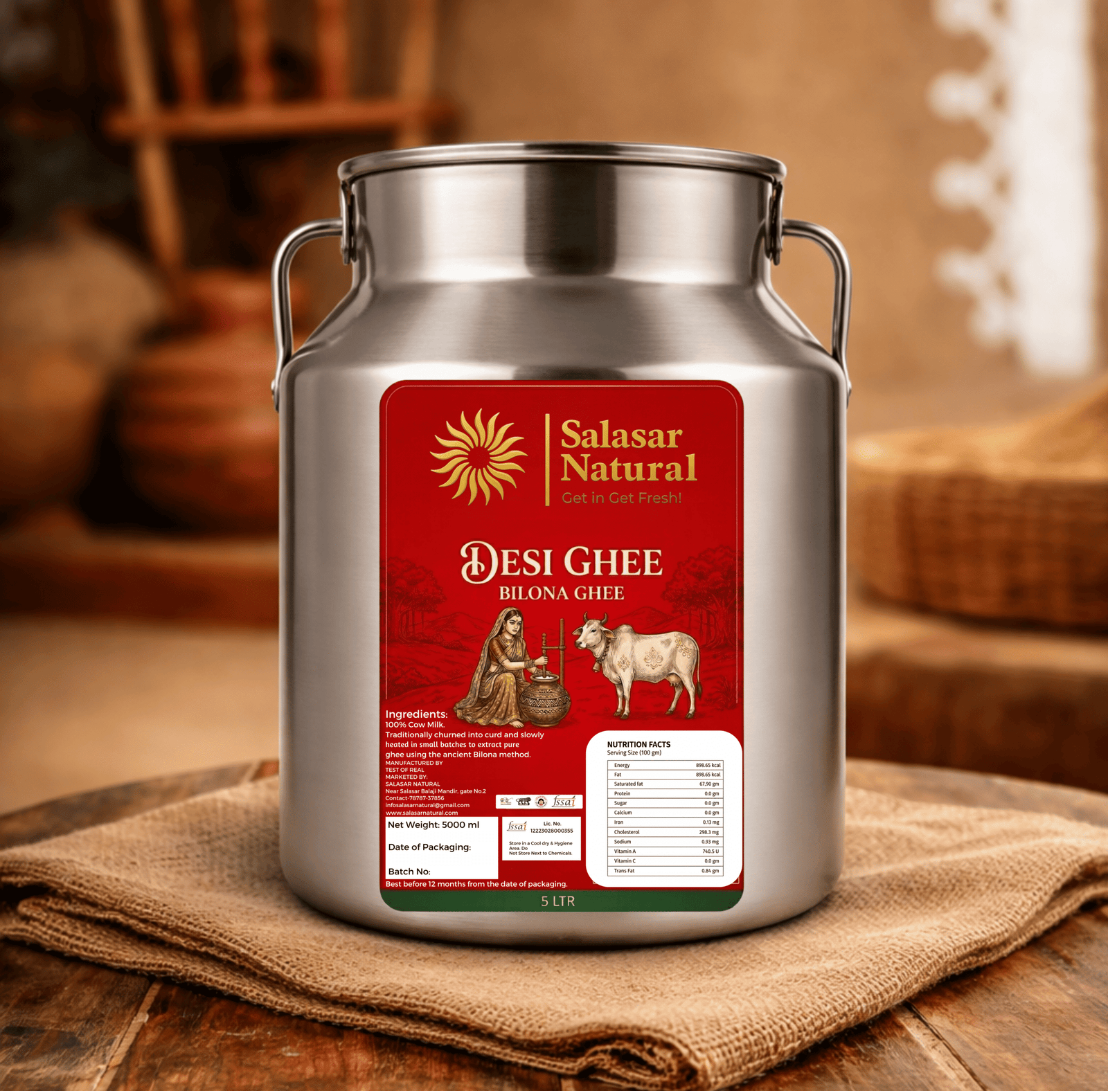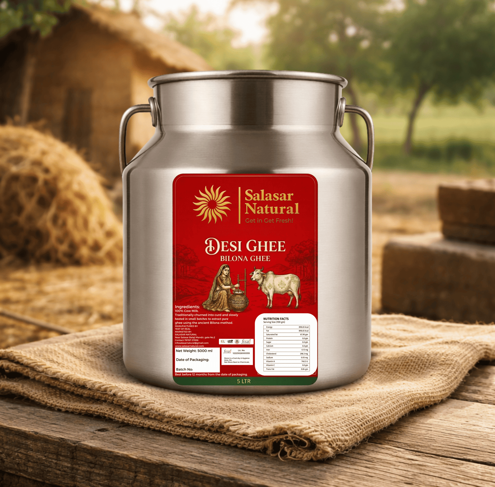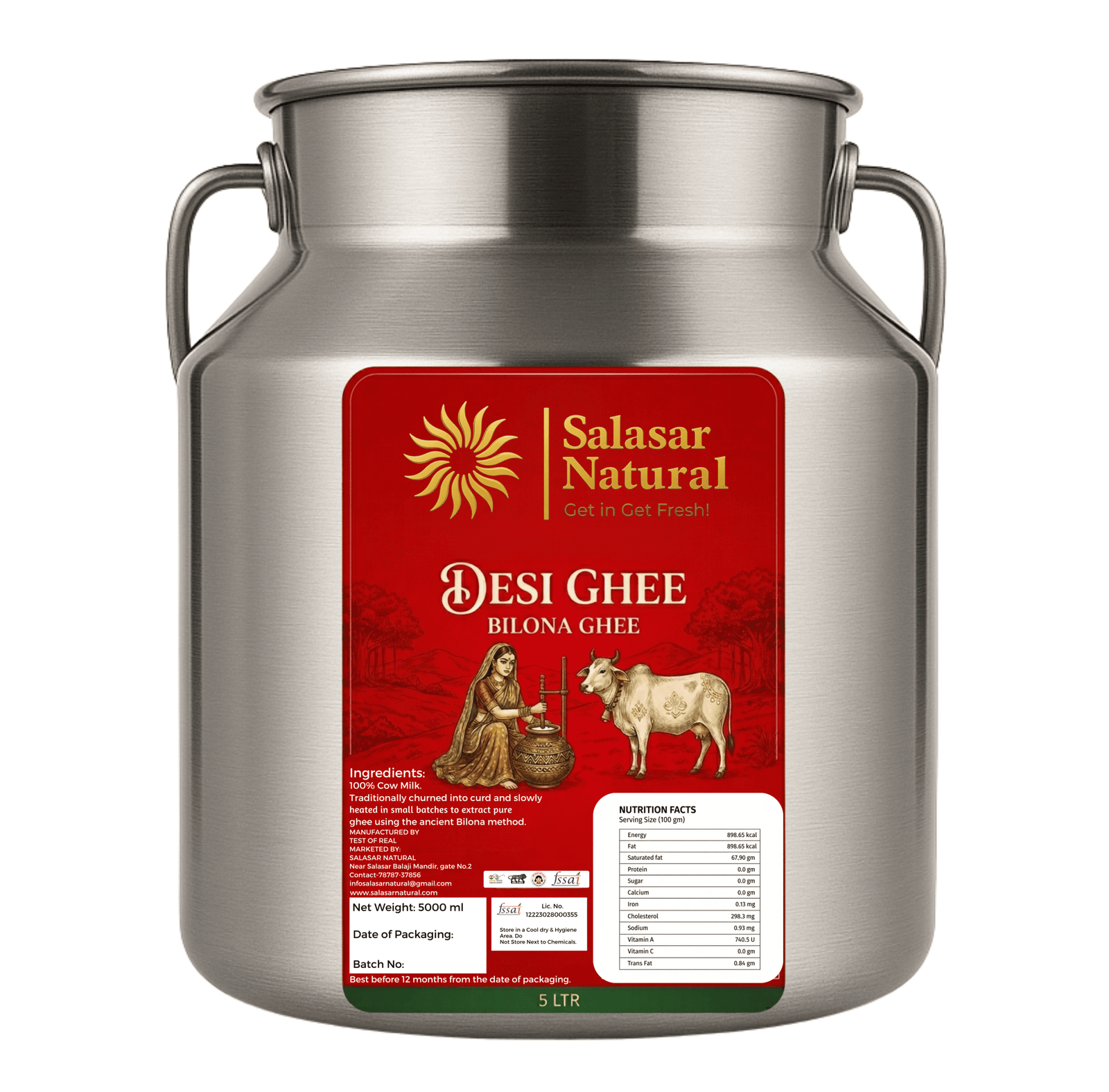 Free from chemicals and preservatives, Salasar Natural ghee supports better digestion, immunity, and overall well-being. Whether for cooking, Ayurvedic healing, or religious offerings, it carries the energy and blessings of our sacred land.